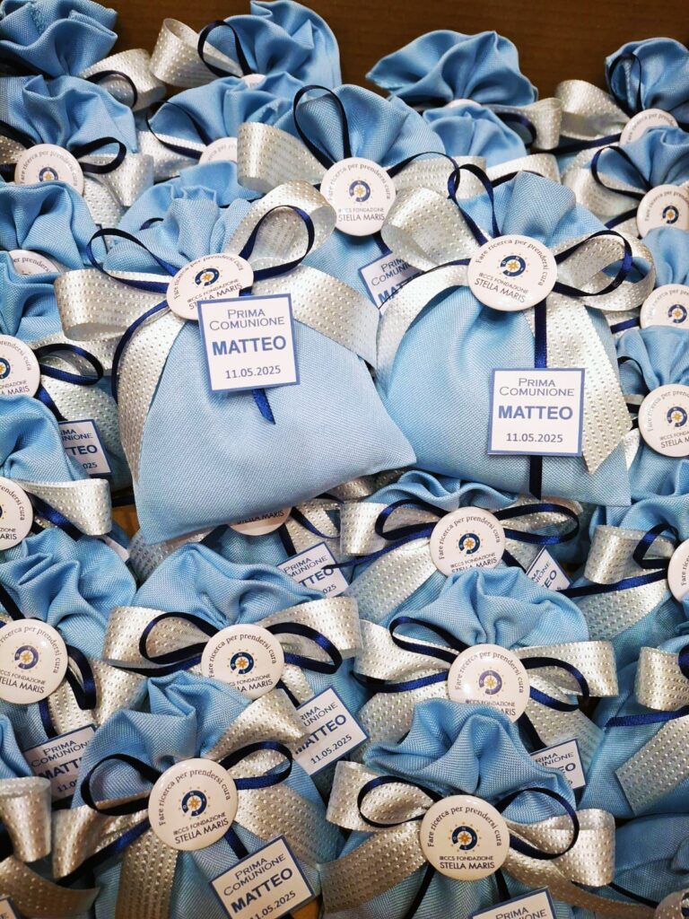 Inoltre, puoi arricchire il tuo omaggio con una penna personalizzata con il logo della Fondazione Stella Maris, perfetta per i tuoi invitati!